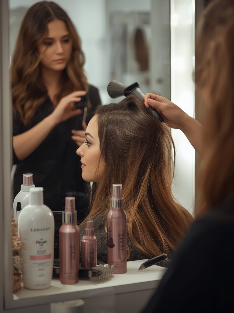 For fine hair: Focus on roots first with the dryer pointing downward, creating lift without overwhelming delicate strands.